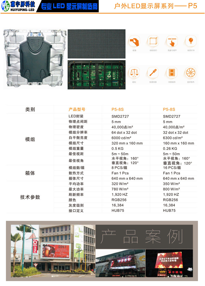 戶外P5全彩LED顯示屏產品特點: