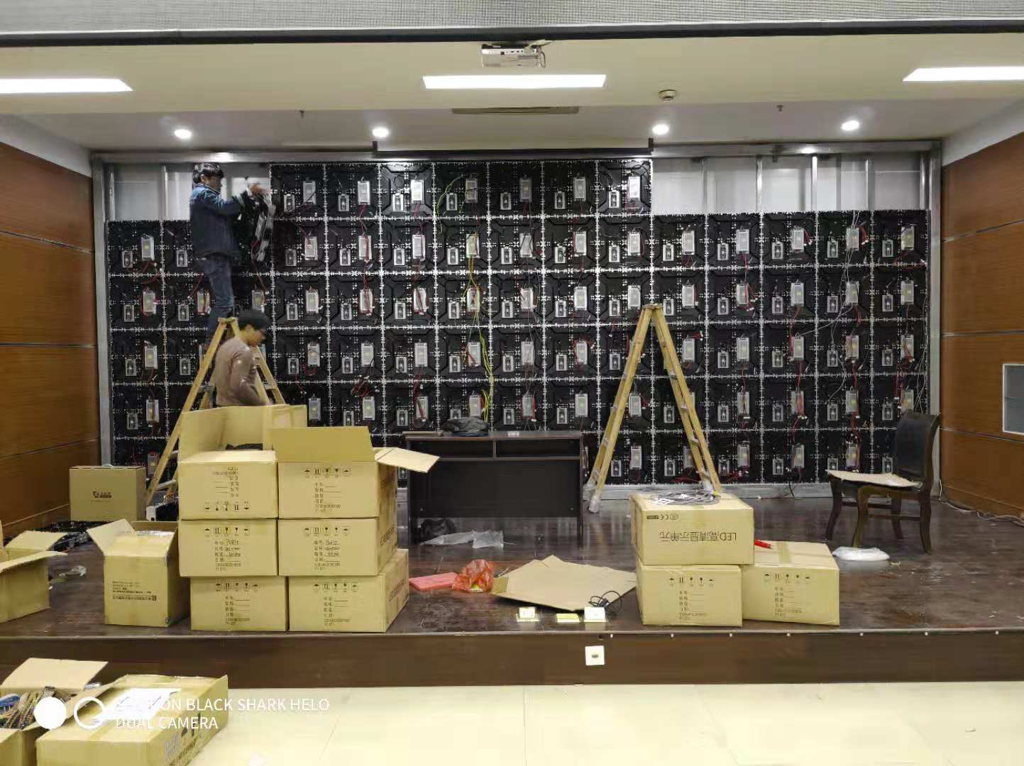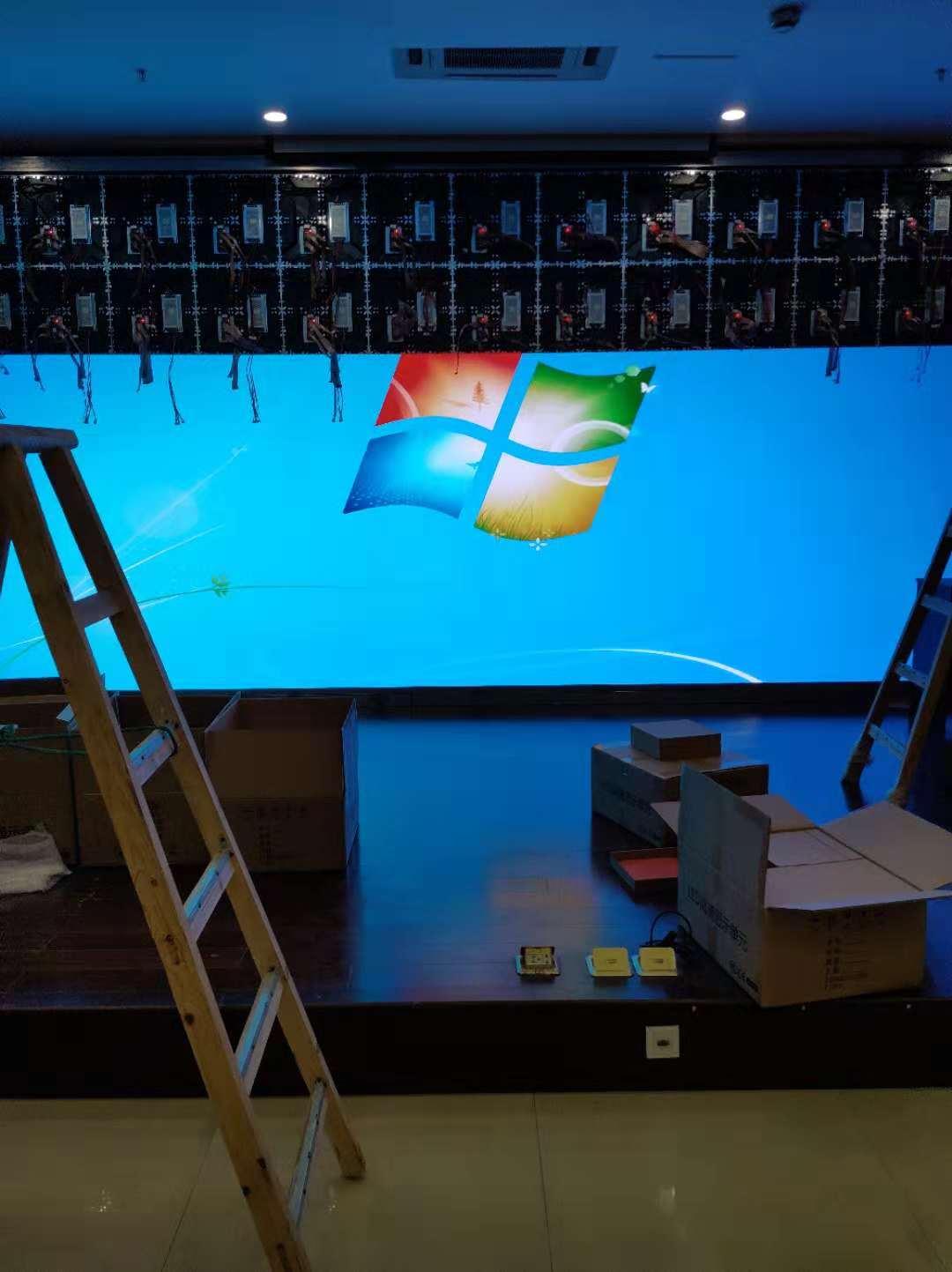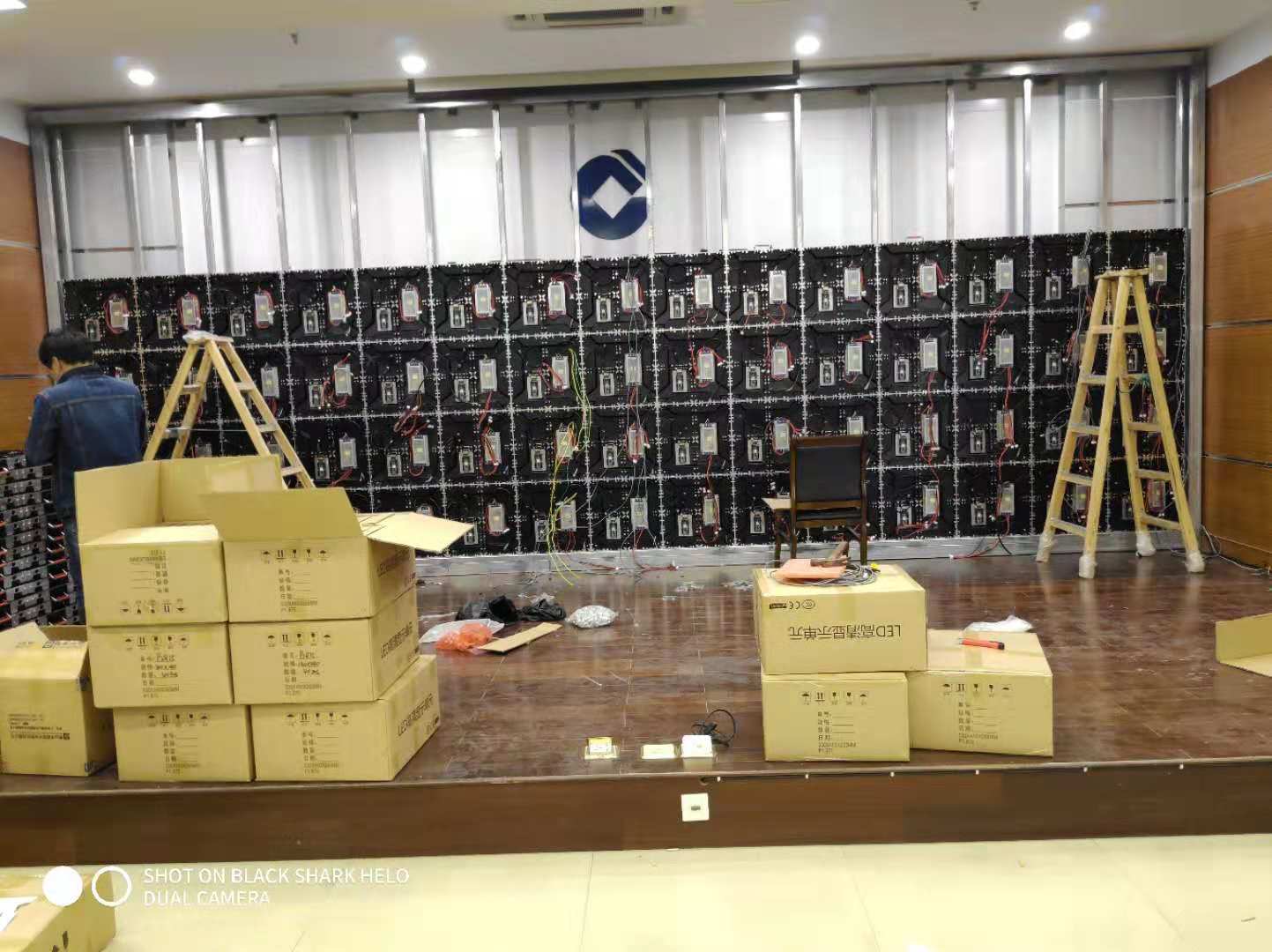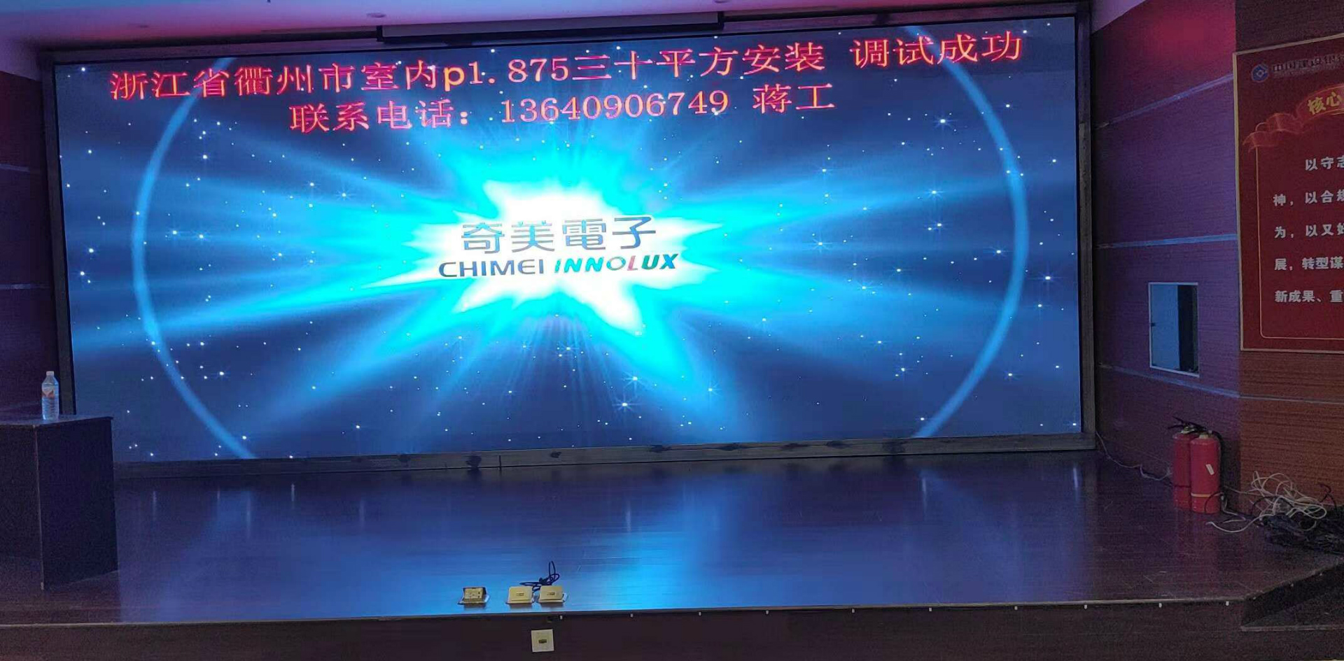 衢州建設(shè)衢州分行總部會議廳LED全彩屏采用p1.875小間距LED顯示屏 燈珠采用晶臺封裝驅(qū)動采用高刷芯片2053 刷新達(dá)到3840