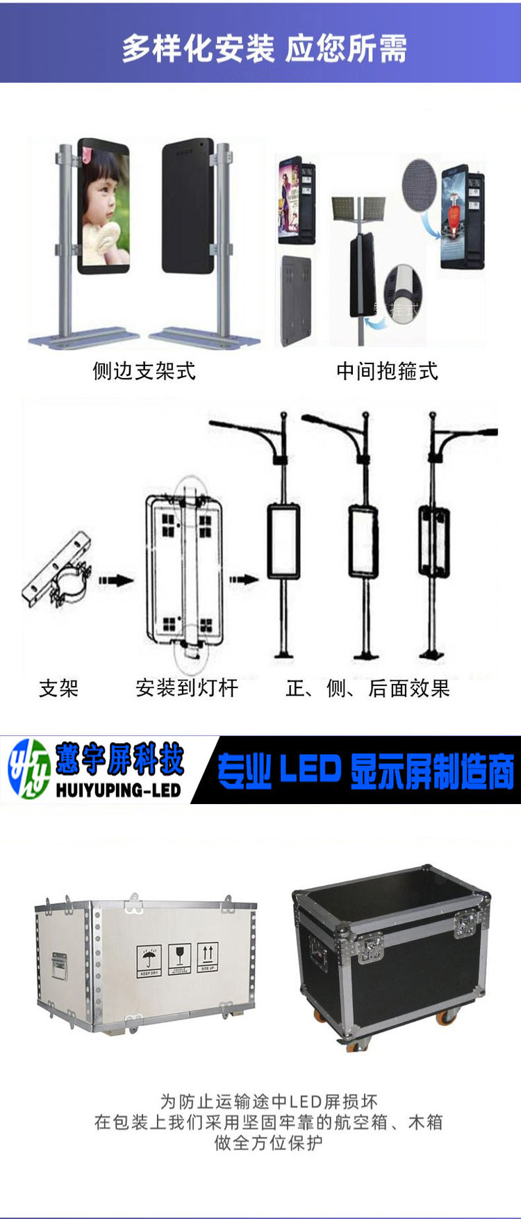 智慧LED燈桿顯示屏是在常規(guī)顯示屏的基礎(chǔ)上升級(jí)、優(yōu)化后的產(chǎn)物,其主要部件還是為:顯示模塊、電源、控制系統(tǒng)(異步為主)、箱體,看似與常規(guī)LED顯示屏屏相同,但卻又有很多不同之處。任何一個(gè)產(chǎn)品,很多制造商都說可以做,但是又有幾家能夠做得好呢?下面是我們公司的LED燈桿屏特點(diǎn)。