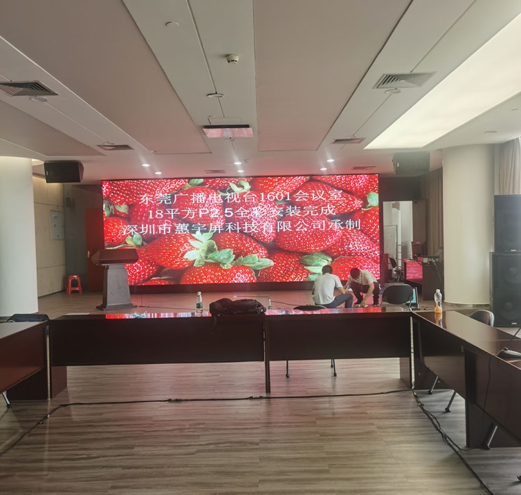 東莞廣電中心1號會議室LED大屏完成,產(chǎn)品安裝快捷,維護方便。高清畫質,完美體驗。